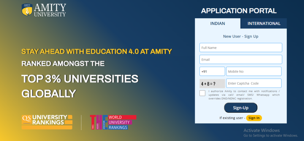Step 1: Visit the official Amity application portal: https://portal.amity.edu/NewOnlineForm/Candidate/SignUp